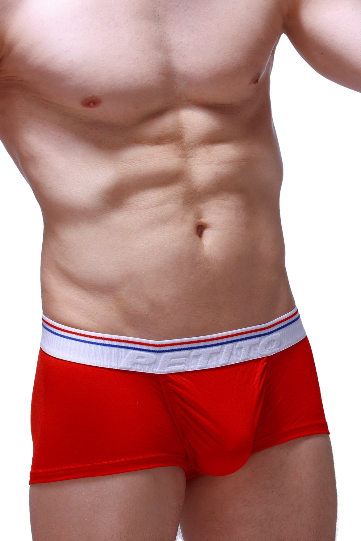 Comfortable red boxer brief with seamless and roomy frontal pouch. Soft fabric with white contrasted waistband